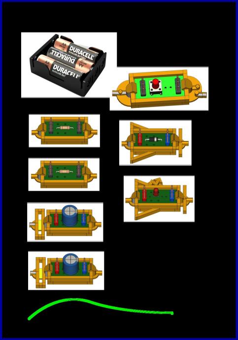 elektronike. Otrok se uči osnovnih vezav in pri vsaki nalogi lahko sproti preverja, ali je nalogo