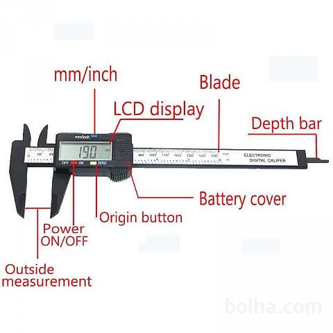 Prodam kljunasto merilo, z digitalnim LCD zaslonom. Primerno za zunanje in notranje merjenje, za merjenje zunanjega in notranjega obsega ter globine, merilno območje 150mm.