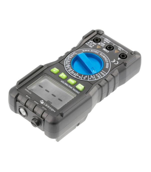 • multimeter meri enosmerno in izmenično napetost do 600 V, enosmerni in izmenični tok do 10 A in upor do 99,99 MΩ, kapacitivnost do 99,99 mF, frekvenco do 60 kHz, izvaja teste diod in neprekinjenosti ter teste baterij z 1,5 / 9 V;