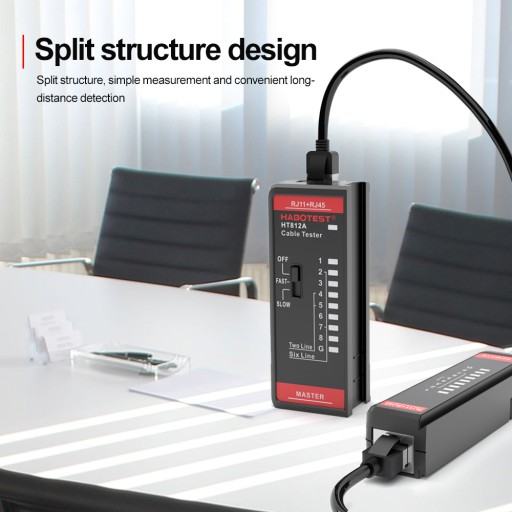 S pomočjo kabelskega testerja Habotest HT812A boste uspešno pridobili informacije o zmogljivosti kablov z RJ11 in RJ45 konektorji. Enostavno boste preverili vrednosti delovanja telefonskih in omrežnih kablov. Naprava ima kompaktno, zložljivo zasnovo. Napaja se iz 2 AAA baterij.