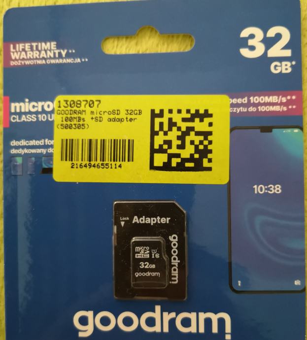 Po potrebi dodajam še čisto NOVO-zapakirano: GoodRam spominska kartica microSD 32GB 100MB/s + SD adapter (500305) za 5 EUR