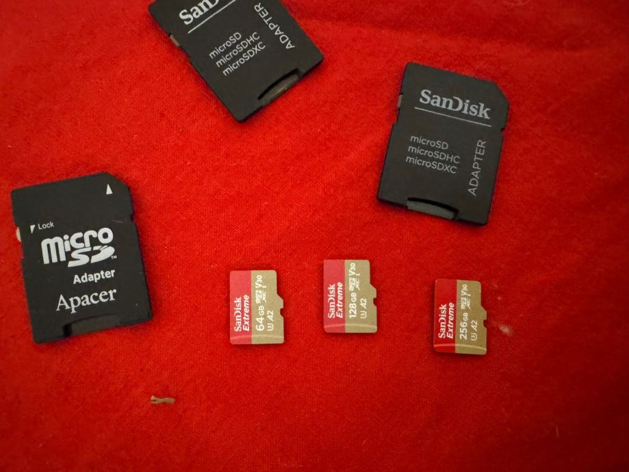-več hitrih spominskih kartic z adapterji (256GB, 128GB, 64GB)