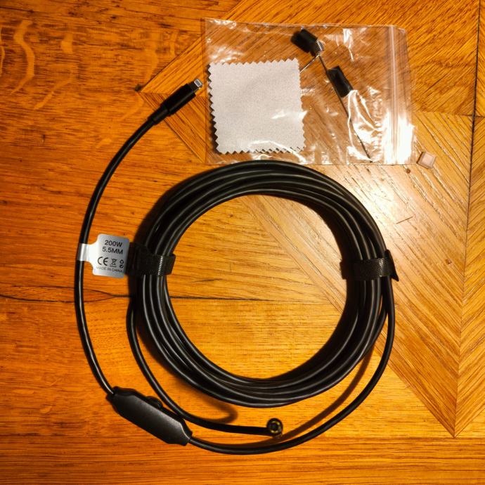 Prodam popolnoma novo še zapakirano endoskopsko kamero. kamera ima 5m kabla za snemanje v težko dostopnih mestih. Priključi se na apple telefone preko mini usb adapterja.