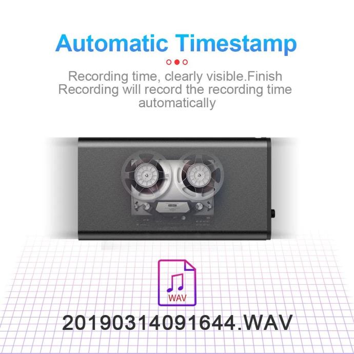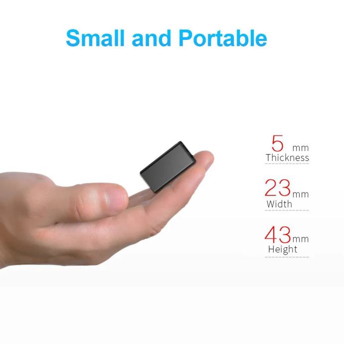 MINIATURNI SNEMALNIK ZVOKA EDEN IZMED NAJMANJŠIH SNEMALNIKOV ZVOKA, VELIKOSTI PISEMSKE ZNAMKE, skrito avtomatsko snema dogajanje v prostoru, avtu, itd. Je velikosti 23 x 43mm tako, da lahko napravo skrito montirate kamorkoli. Vklopite samo mini stikalo in začnite skrivaj avtomatsko snemati pogovore s tem mini snemalnikom. Pokrije prostor od 20 do 30m2. Snema do 13 ur z enim polnjenjem baterije. Snema v WAV formatu, napolni se kar preko USB-ja na računalniku. Ko želite posnetke poslušati, ga priklopite na računalnik in že lahko poslušate posnetke. Za priklop na PC ni potrebno nalagati dodatnih programov. Na računalniku lahko posnetke hitro poslušate z vrtenjem naprej-nazaj.