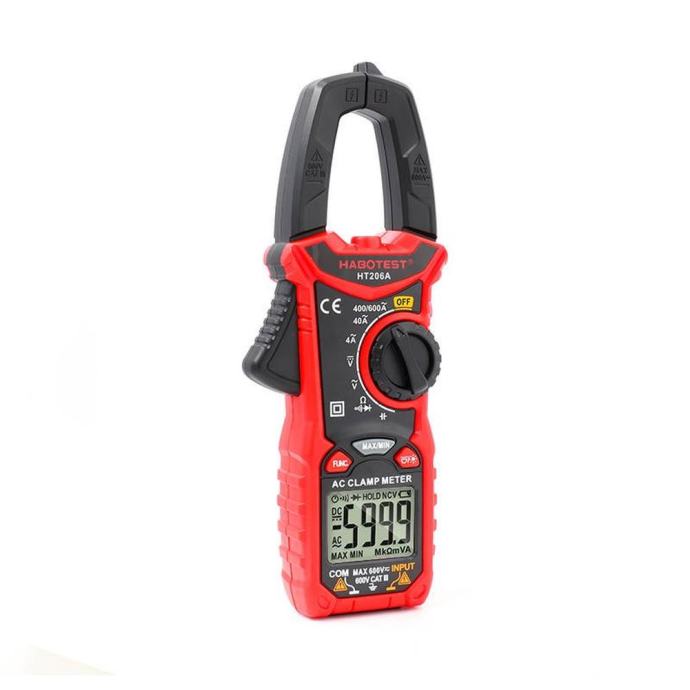 Funkcionalne merilne klešče Habotest zagotavljajo natančne meritve, katerih rezultati so prikazani na lahko berljivem in osvetljenem LCD zaslonu. Velikost čeljusti je do 26 mm, kar omogoča udobno upravljanje naprave. HT206A je opremljen tudi s svetilko, ki olajša delo v temnih prostorih.