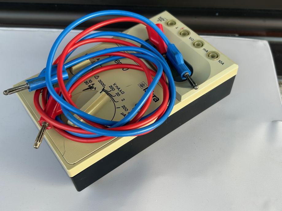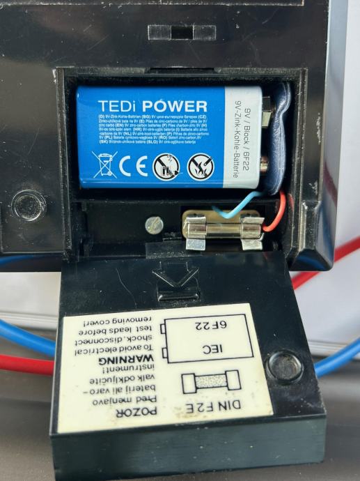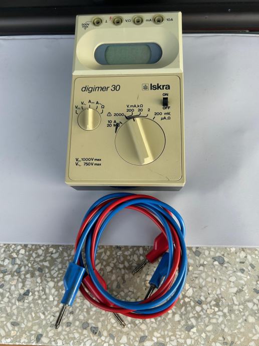 Prodam digitalni merilni inštrument DIGIMER 30 ISKRA - Multimeter - Unimer. Multimeter je lepo ohranjen in normalno delujoč. Prodam skupaj z merilnimi vrvicami. Aparat deluje na klasično 9V baterijo. Baterijski kontakti so suhi in čisti. Instrument sem testiral in deluje popolnoma brezhibno. V levem spodnjem koncu je rahlo počena plastika (razvidno iz fotk), kar pa seveda ne vpliva na delovanje instrumenta.