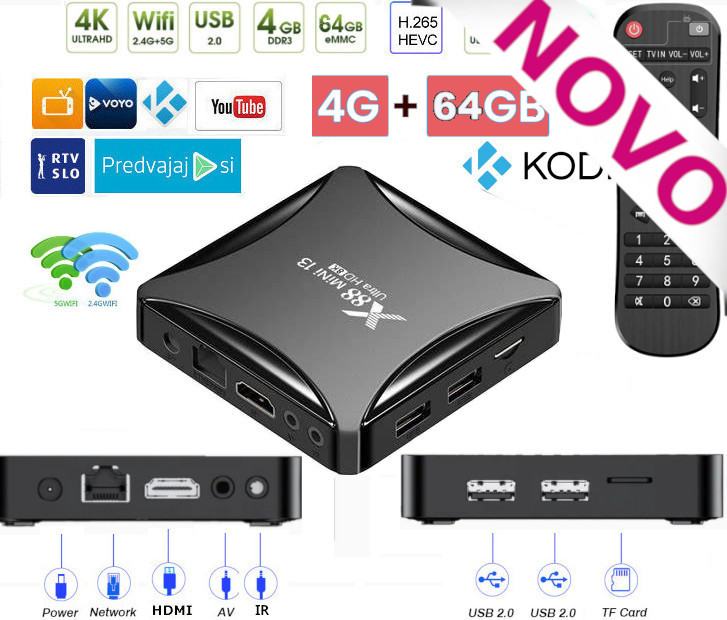 X88 mini 13 4/64GB Android BOX / mini računalnik za priklop na TV z HDR podporo, je multimedijski predvajalnik za reprodukcijo multimedijskih datotek, vključno z MKV, AVI, MOV...
