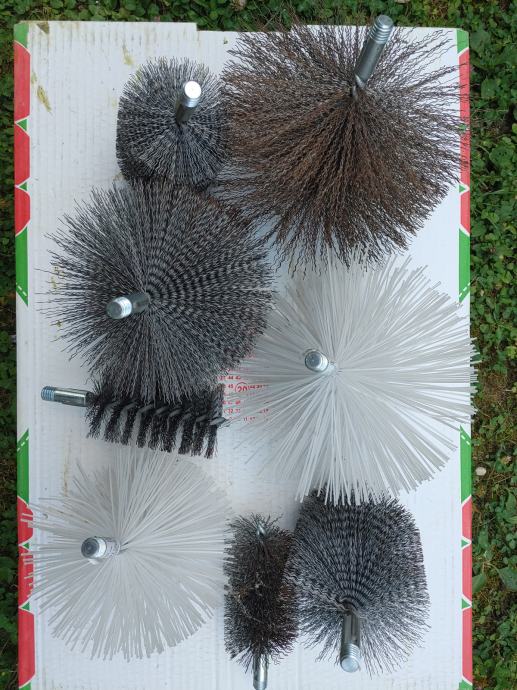 Prodam več ščetk za čiščenje dimnikov in peči, navoj M12. Prevzem v Ljubljani po predhodnem dogovoru. Cena za posamezen kos 5 do 8 evrov, šest kosov je 25 evrov.