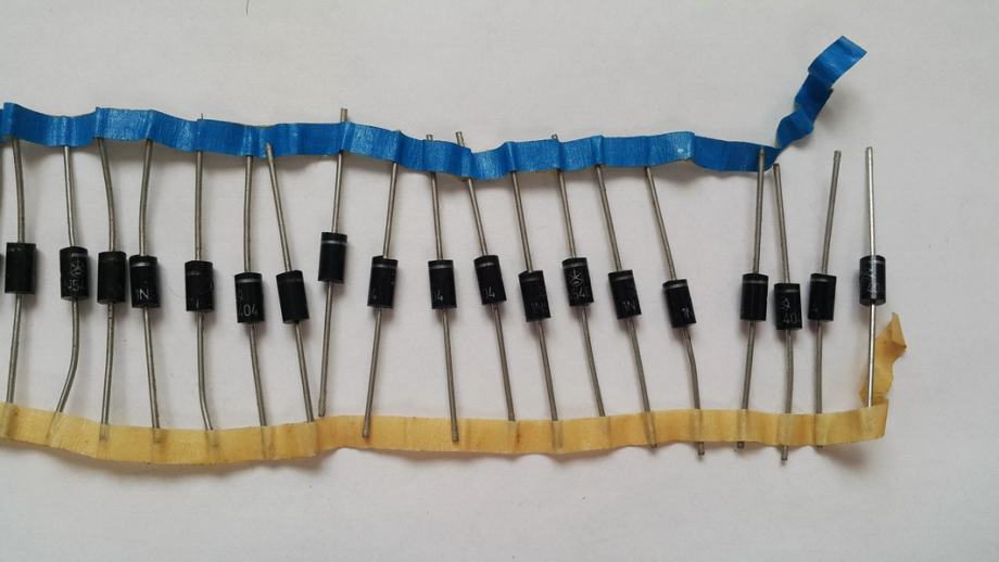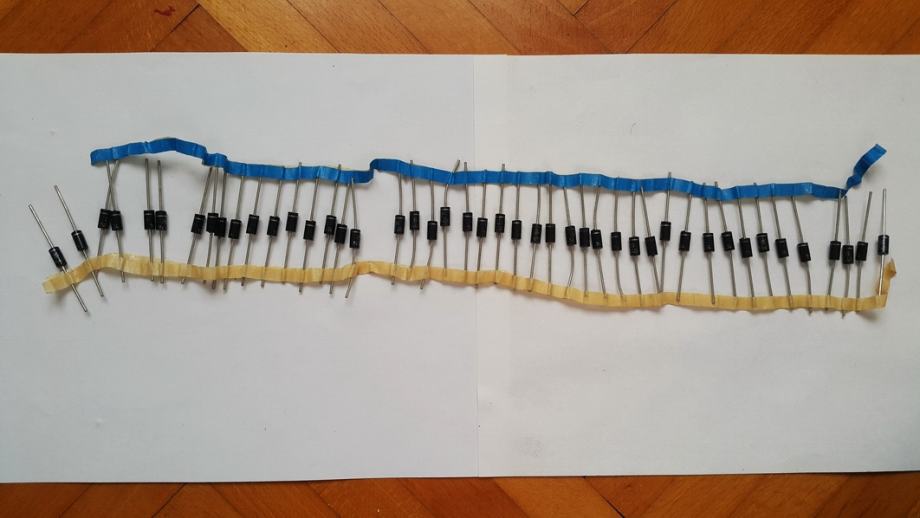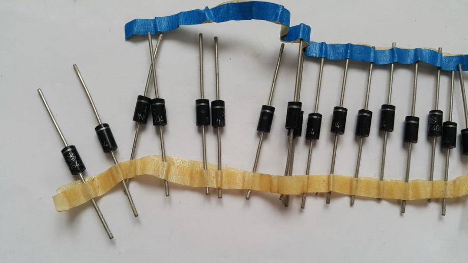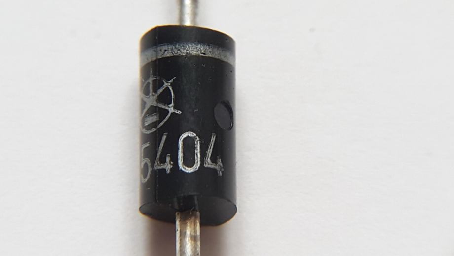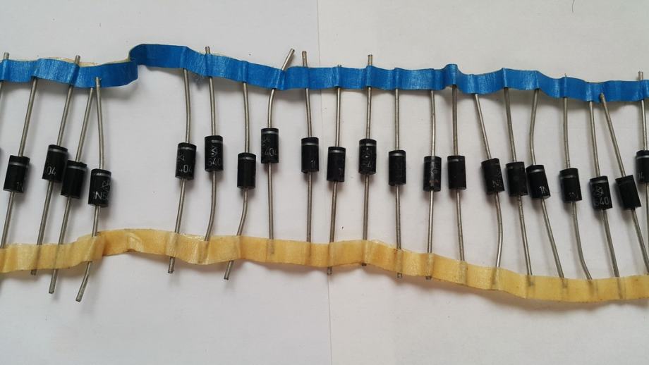 Prodam več kosov (45) precej starejših originalnih Iskrinih 1N5404 diod. Vse so stare sigurno 20 let in se mi kot realno nove, nerabljene valjajo že nekaj časa v predalu v delavnici. Začuda imajo še vse v bistvu popolnoma ohranjene vrednosti/parametre (testirane na multimetru pač). Zadeva ima praktično torej že zgodovinsko vrednost (poleg funkcionalne).