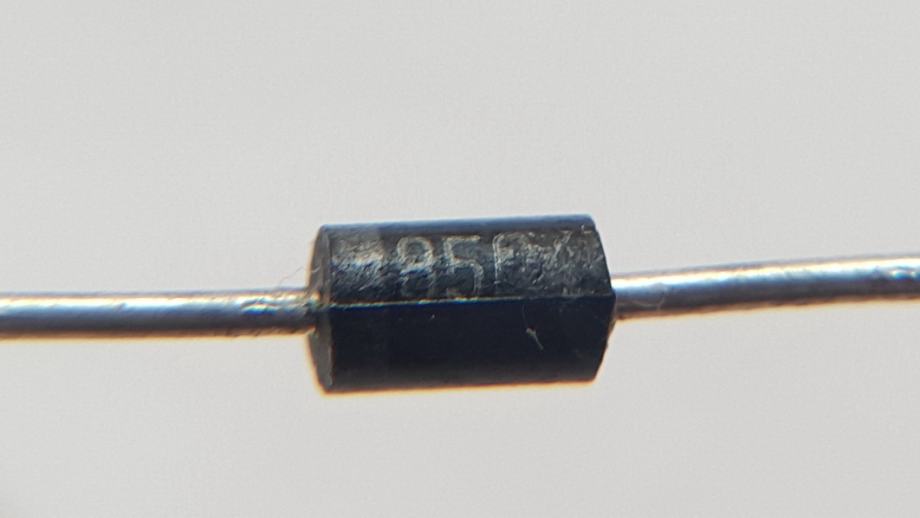 Prodam več kosov (37) precej starejših originalnih Motorolinih 1N4001 8504 diod. Vse so stare sigurno 20 let in se mi kot realno nove, nerabljene valjajo že nekaj časa v predalu v delavnici. Začuda imajo še vse v bistvu popolnoma ohranjene vrednosti/parametre (testirane na multimetru pač). Zadeva ima praktično torej že zgodovinsko vrednost (poleg funkcionalne).