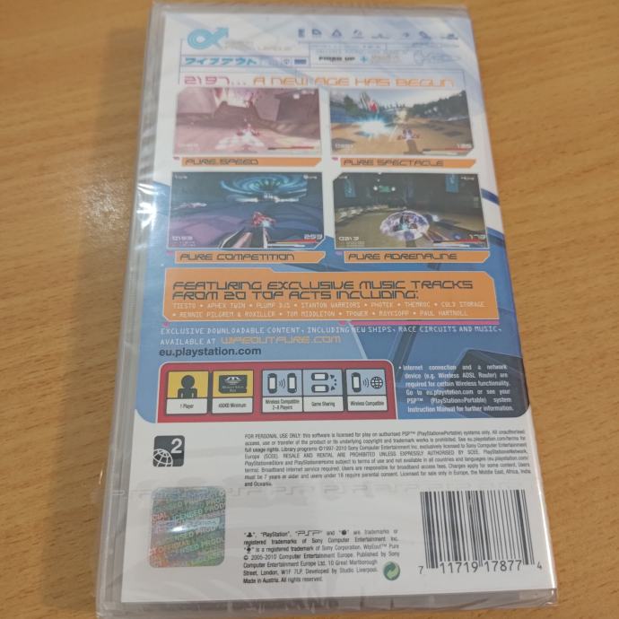 Prodam še originalno zapakirano igro Wipeout Pure za konzolo PlayStation Portable.