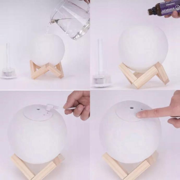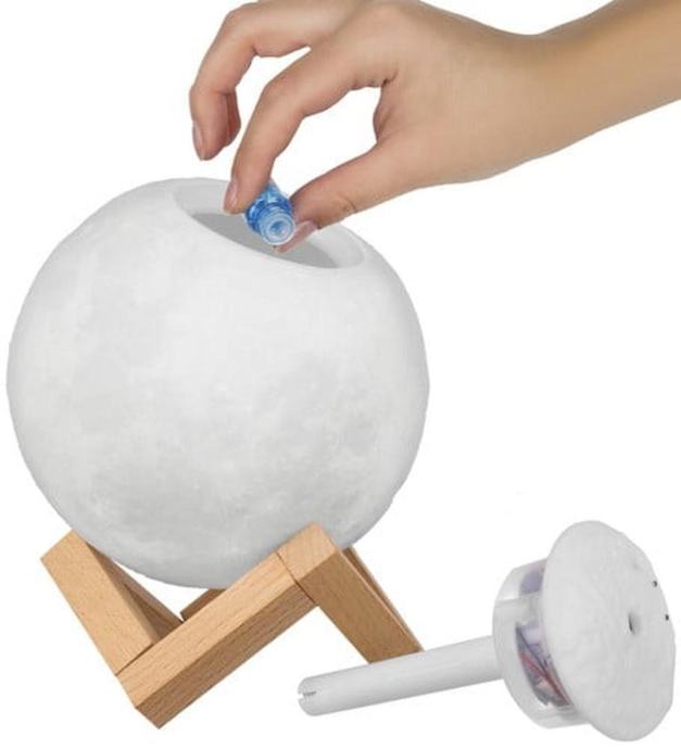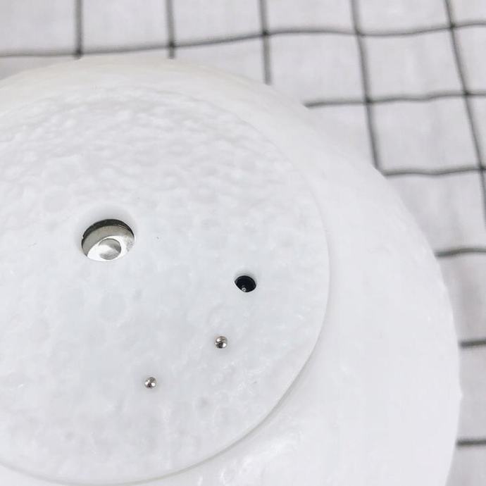 Vlažilec zraka z LED svetilko je izdelan z inovativno 3D tehnologijo , zahvaljujoč kateri odlično posnema pravi videz lune . Ima grobo strukturo in vsak krater na njem ustreza pravemu . Če sanjate, da bi zaspali pod svetlo, sijočo luno, vam ta svetilka ponuja takšno priložnost