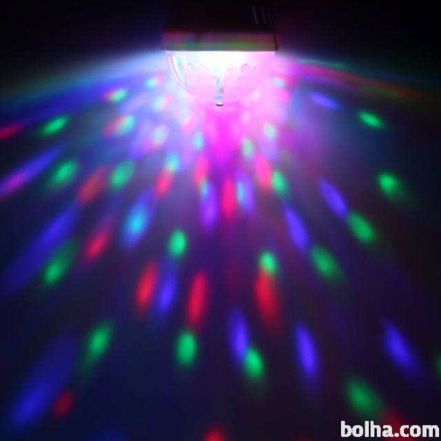 NOVA, PARTY DISKO vrteča disco večbarvna energijsko varčna (energijski razred A = do 80% manj porabljene električne energije) disko party žarnica disco kugla lučka luč reflektor lučke luči krogle kugle reflektorji za zabave partyje partije žur žure zabavo (novoletne) zabave, ki se VRTI in SPREMINJA BARVO.