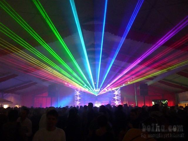 a)laser show (beam show) kot dodatek za popestritev obstoječe razsvetljave (rave, house prireditve, koncerti, diskoteke)