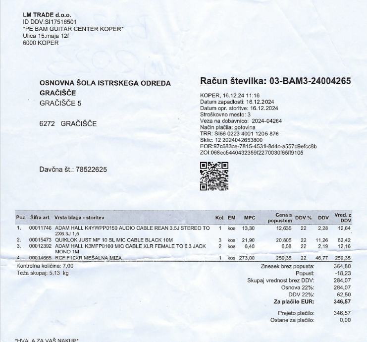 Zraven je še 3x po 10m kabla za mikrofon oz. zvočnik, Kabel za priklop na računalnik in adapter za priklop starejših zvočnikov