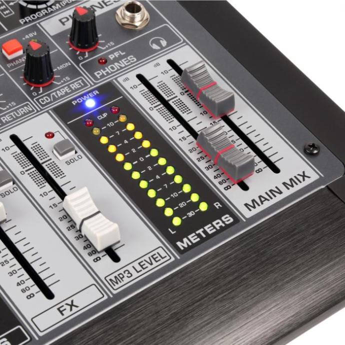 * Kompaktna in vsestranska: 16-kanalna mešalna miza s številnimi učinki * Vgrajene funkcije: USB-vhod za predvajanje MP3 datotek in bluetooth vmesnik * Odlična kombinacija: možnosti priklopa za mikrofone, linijske naprave in naprave za ustvarjanje učinkov * Optimalni zvok: 9-pasovni izenačevalnik za odlično prilagoditev zvoka * Pripravljena za uporabo v studiu: preklopno + 48 V phantom napajanje za uporabo kondezatorskih in snemalnih mikrofonov