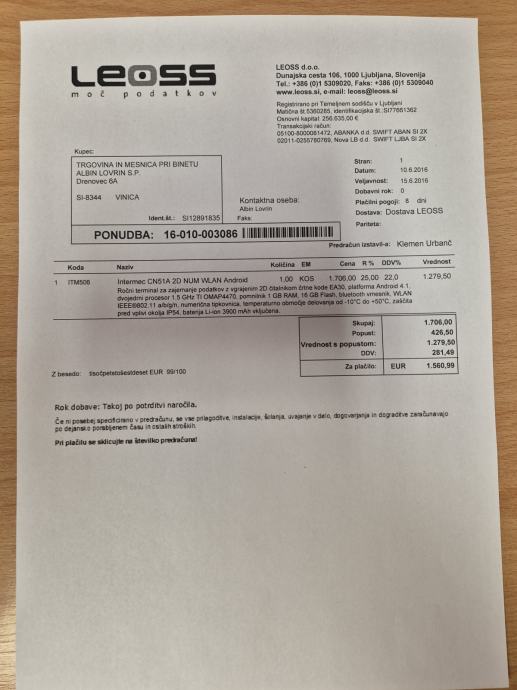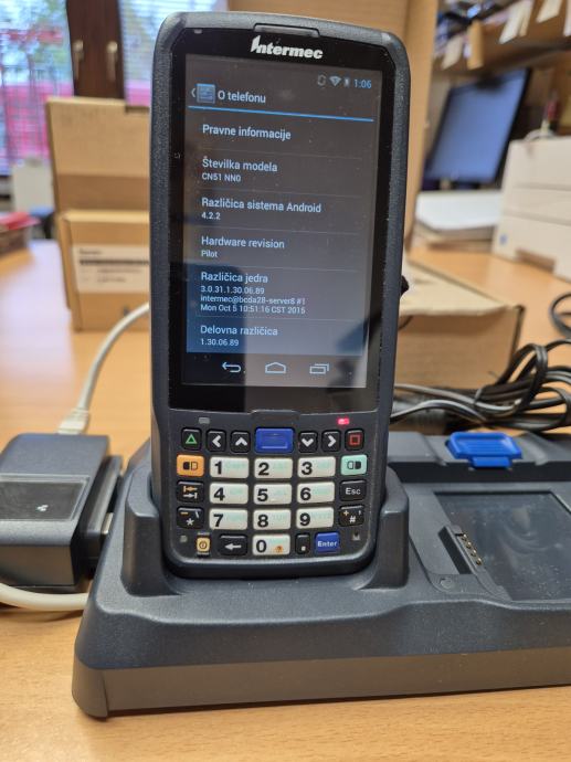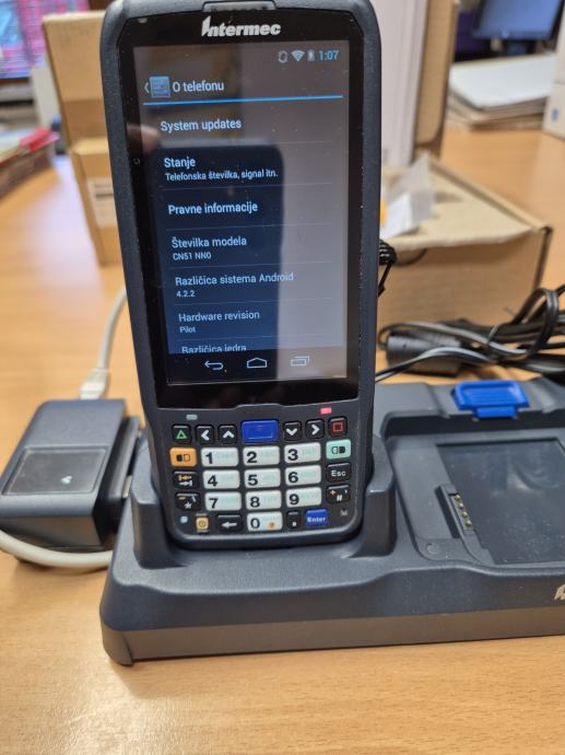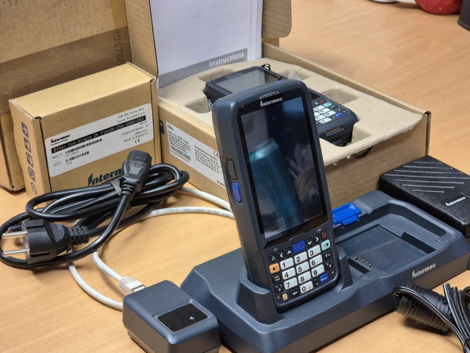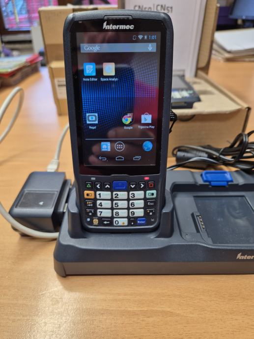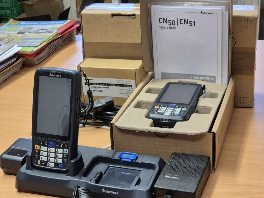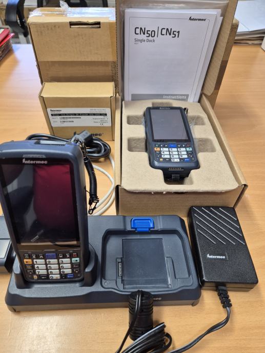 Prodam dva rabljena ročna terminala HONEYWELL INTERMEC CN51A, z vgrajenim 2D čitalnikom črtne kode, platforma android 4. 1 ,dvojedrnim procesorjem 1,5 GHz, polnilnik 1GB RAM, 16 GB Flash disk. Bluetooth vmesnik, numerična tipkovnica. Zdraven pripada polnilno prenosna postaja. Oprema je lepo ohranjena.