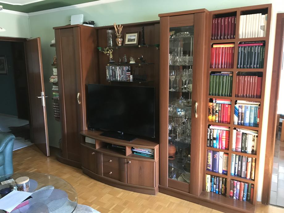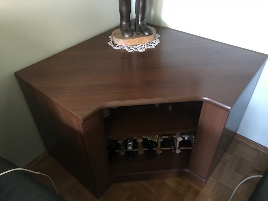Naprodaj odlično ohranjen komplet za dnevno sobo Alples v barvi češnje z integrirano razsvetljavo. Elementi se lahko sestavijo v drugačnem vrstnem redu.