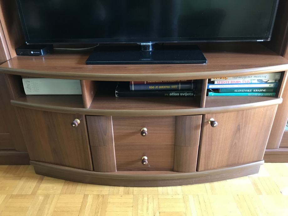 TV regal s predali: 120 cm x 56 cm (globina) x 62 cm višina