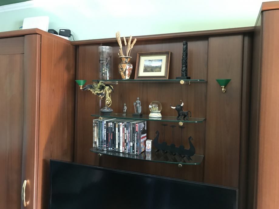 Stena z vključenimi lučmi in policami: 120 cm (širina) x 147,5 višina - do TV regala.