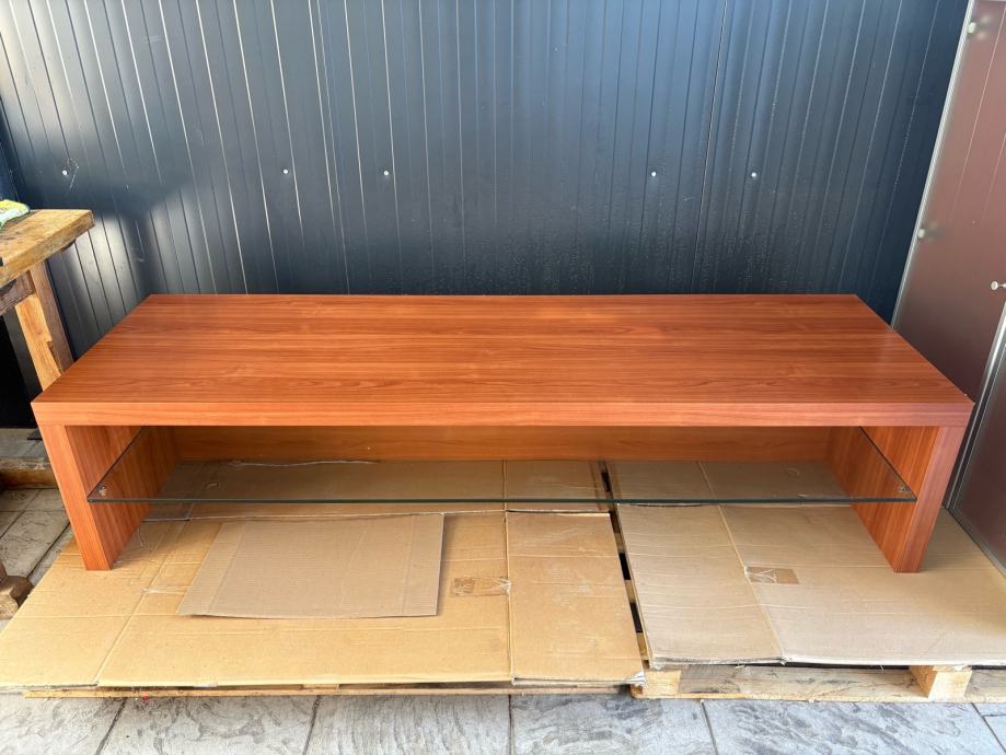 TV omarica 180x56x41cm in visoka barska omarica 120x90x43cm Made in Italy. Na stekleni polici nizke omarice sem imel ojacevalec, cd,… v visoki pa kozarce in steklenice, lahko pa se koristi za karkoli. Pohištvo je višje kvalitete. Prodajam zaradi zamenjave barve ostalega pohištva, je pa vse zelo dobro ohranjeno. Možna tudi menjava.
