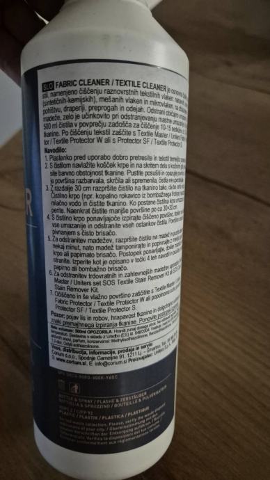 Čistilo za tekstil / Fabric Cleaner je osnovno čistilo, namenjeno čiščenju tekstilnih vlaken in mikrovlaken na oblazinjenem pohištvu, preprogah in odejah. Odstrani običajno umazanijo. Zelo je učinkovito pri odstranjevanju mastnih madežev.