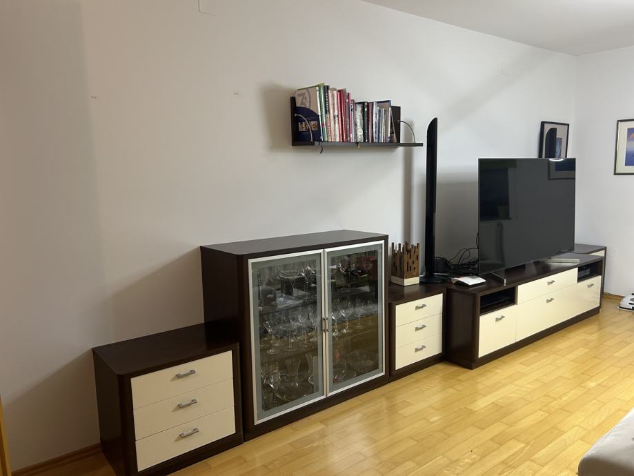 Prodam zelo dobro ohranjeno dnevno sobo Alples. Dva predalnika, omara z vitrino in omara za TV, dve viseči polici, pisalna miza.