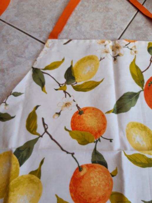 Prodam ročno izdelan bombažni predpasnik z všitim imenom in ostalim besedilom in ribico.