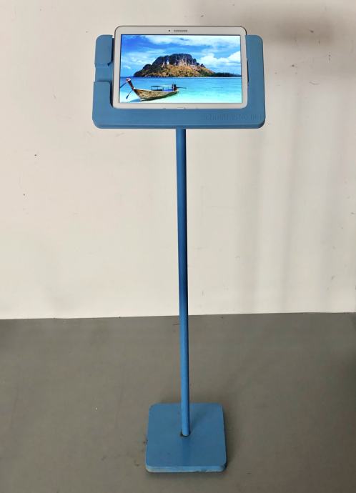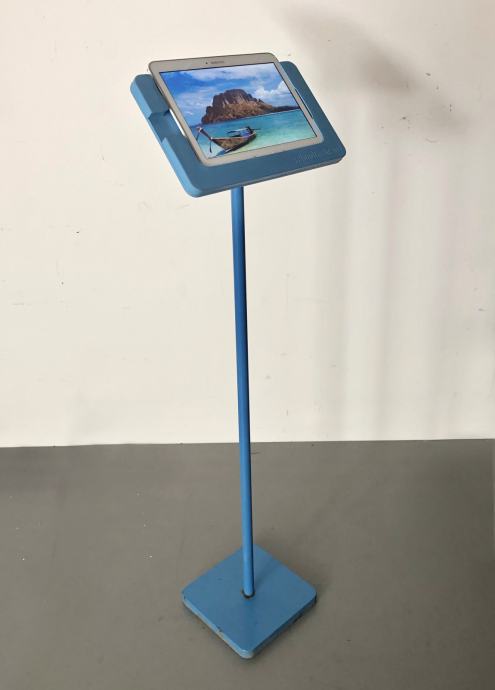 Stabilno stojalo za tablične računalnike do velikosti 10.5". Možnost odstranitve zgornjega nastavka za namizno uporabo. Nastavek oz. držalo je iz trde gume, stojalo in podstavek sta iz kovine. Za domačo uporabo ali promocijske namene.