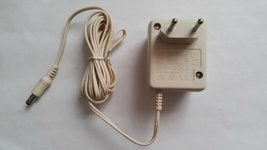 Prodam vtični Philips-ov 220/240 V AC na 5 V 500 mA DC 5,5 x 2,2 mm adapter, model 4203-030-76880. Izdelek je nerabljen, sicer starejši, a brezhiben. Kozmetično je odlično ohranjen, nič ni kaj polomljeno, kabel nič precvikan, itn. V omari v delavnici mi leži sigurno že več kot 20 let. Konektor se lahko seveda odreže stran in gor nalota ustreznega, če Vam ta ne odgovarja. Zadeva je lahko primera (ob predelavi) tudi za polnjenje ali napajanje raznih USB naprav, ker ima 5 V DC izhod. Kakorkoli, že čaka na svojega novega lastnika.
