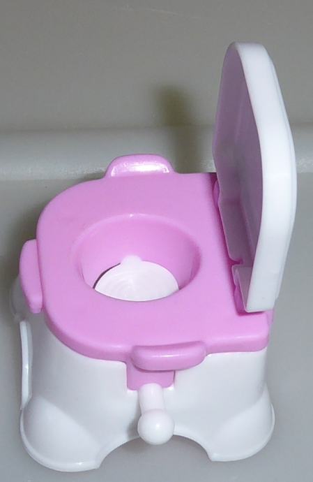 Kot nova straniščna školjka za igrače. Ob strani ima še vzvod - ko ga zavrtimo, se wc "sprazni".