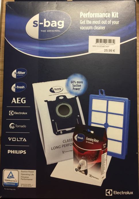 Komplet sestavljajo: 4x -vreča za sesalnik, 1x -pralni higienski filter, 1x - motorni filter s 4 vrečkami, ki imajo vonj po svežih večernih vrtnicah.
