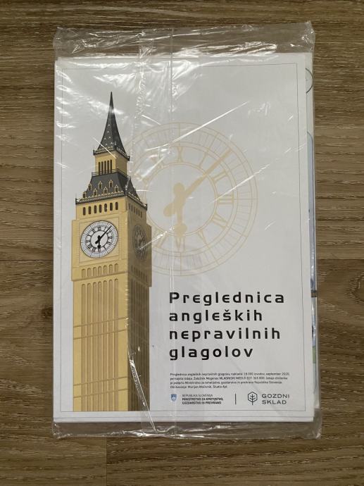Prodam še zapakiran komplet periodnega sistema in tabele nepravilnih angleških glagolov.