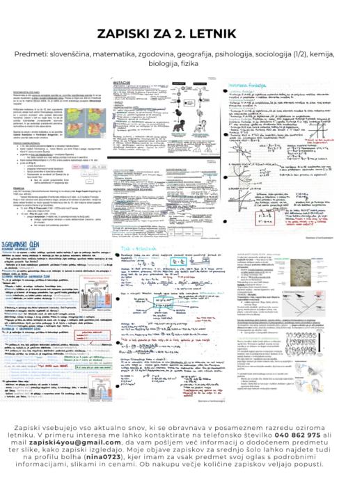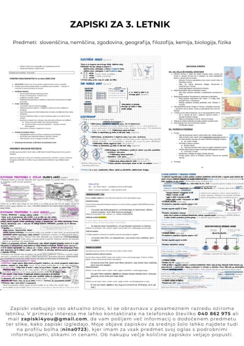 Prodajam urejene zapiske v PDF obliki za srednjo šolo (imam tudi za osnovno). Zapiski so pregledni, primerni za učenje, ponavljanje in pripravo na teste ter spraševanja.