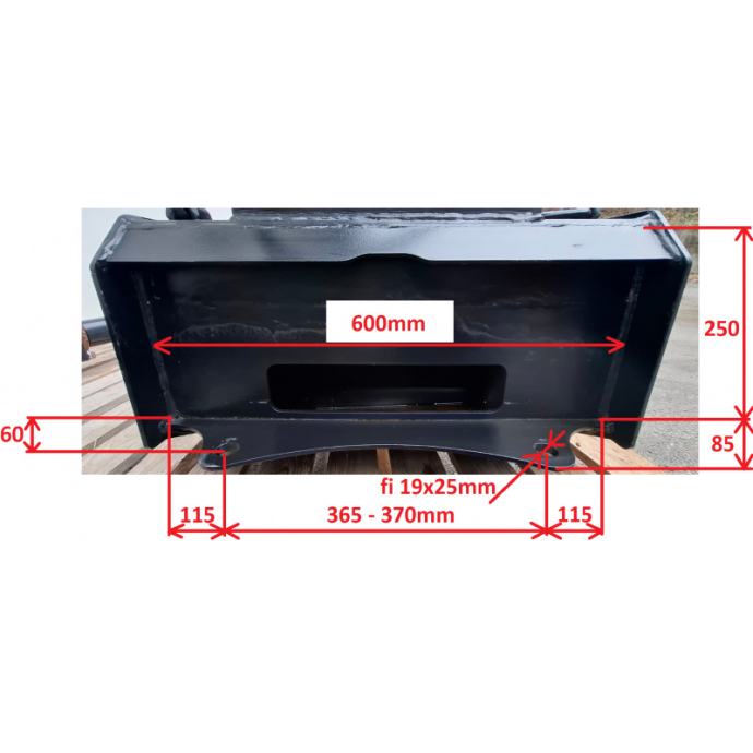Premer spodnjih dveh lukenj za priklop: 19x25mm