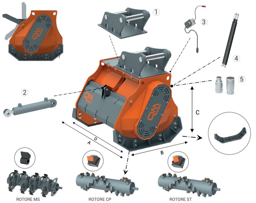 Mulčer za bagre QM FR100 je zmogljiva gradbena glava, zasnovana za profesionalno drobljenje debele vegetacije, vej in svežega lesa. Primeren je za bagre v srednjem tonážnem razredu, kjer je potrebna visoka moč, stabilnost in odpornost pri intenzivnem delu.