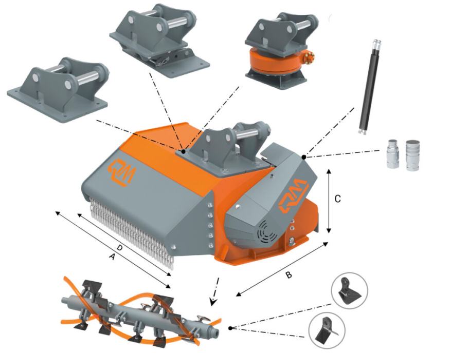 Mulčer za bagre QM SL50 je kompakten in robusten mulčer, zasnovan za učinkovito odstranjevanje podrasti, trave in manjših vej. S težo 90 kg je primeren za manjše in srednje velike bagre, njegova okretnost pa omogoča delo na ozkih in težje dostopnih terenih.