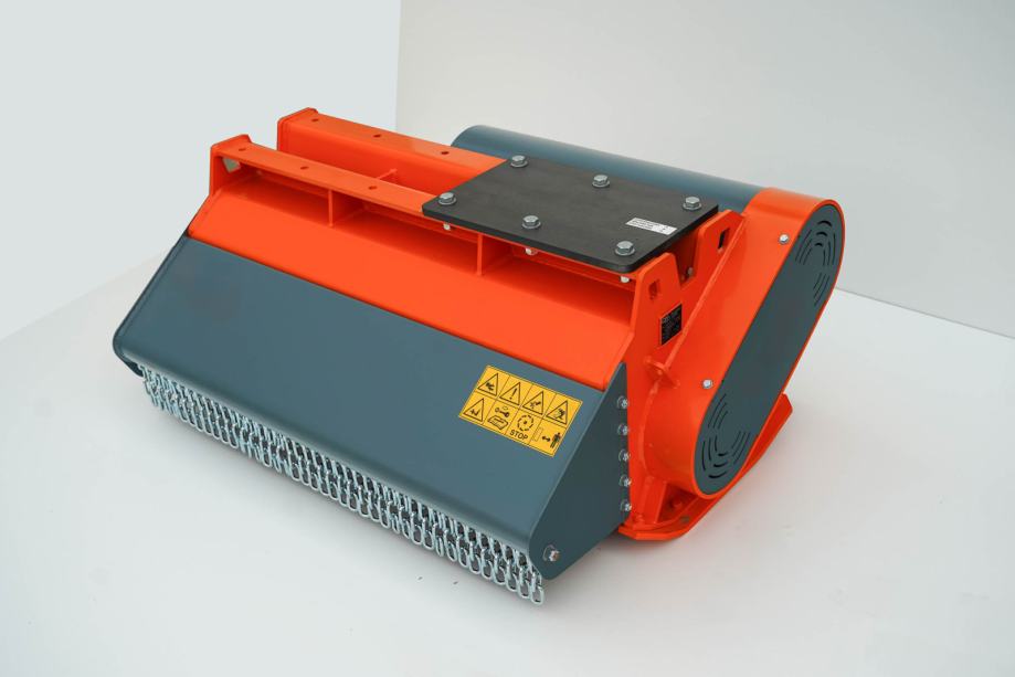 Zadnja gumirana zavesa ščiti okolico pred razmetavanjem materiala, zamenljivi drsniki pa zmanjšujejo stroške vzdrževanja in podaljšujejo življenjsko dobo stroja. Mulčer je opremljen z vsemi potrebnimi zaščitami v skladu s CE standardi. Priložena je tudi jeklena montažna plošča, pripravljena za vijačno prilagoditev priključka na vaš bager.