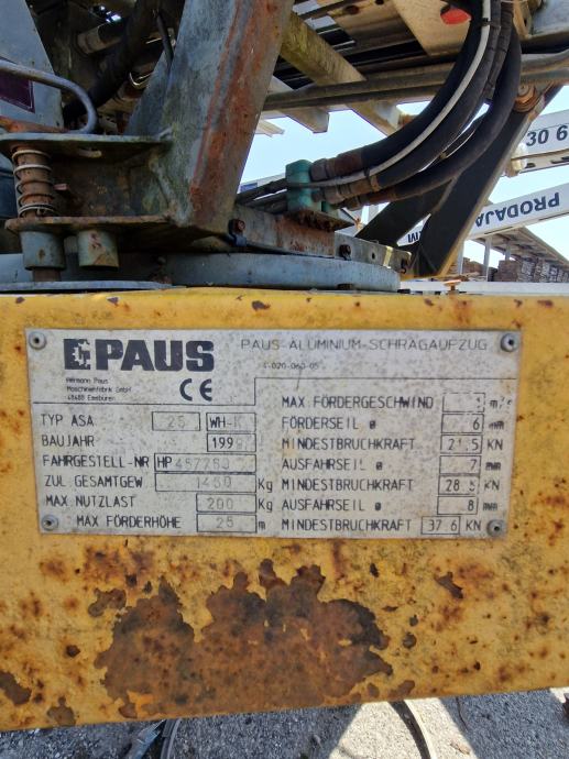 Prodamo rabljeno transportno lestev Paus. 25 WH, leto izdelave 1999, maksimalna nosilnost 200 kg, maksimalni dvig 25 m. Prodajamo zaradi nakupa novejše. Možnost ogleda v Šmarci (Kamnik). Za več info pokličite na tel: 041 665 076.