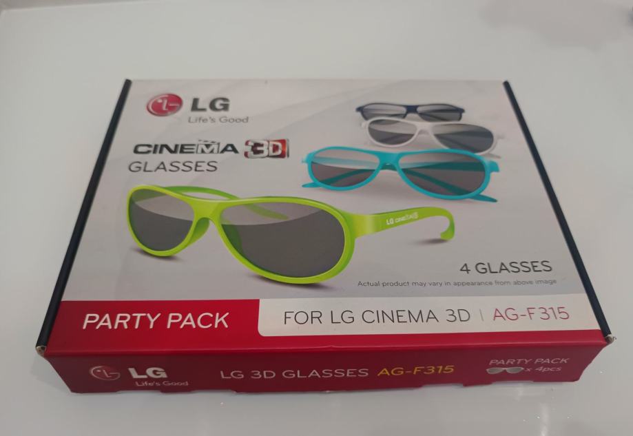 Prodam nerabljen paket LG CINEMA 3D očal AG-F315. V škatli 4 kosi.