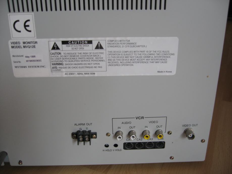 Prodam starejši monitor za priklop štirih nadzornih kamer, ki jih lahko spremljamo na monitorju hkrati ali pa vsako posebej na celotnem ekranu. Iz slike zadnje strani je viden način priklopa. Cena je simbolična 39,00 eur + 7,00 eur morebitne poštnine ob predhodnem nakazilu na trr.