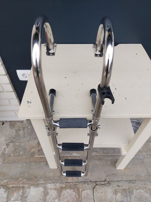 Pregibna krmna lestev inox, 4 stopničke 1+3, dolžina 80 cm, širina stopničke 14 cm prodam