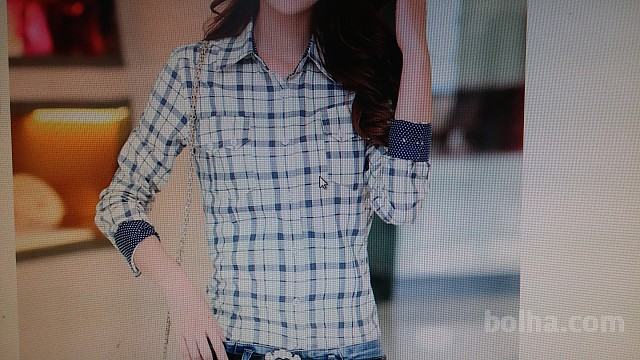 Prodam srajco, nikoli nošena, 1x oprana, konf. št. L, 100% bombaž Na njej so temno modri in umazano beli kvadratki.