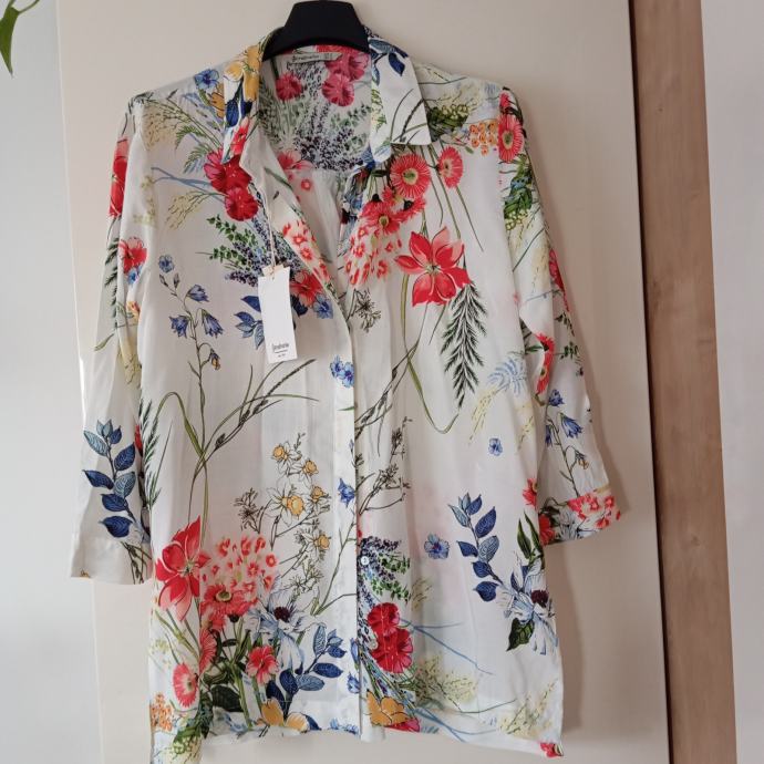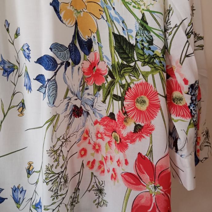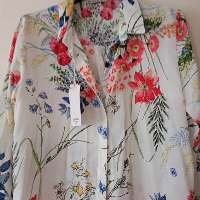 Nova z etiketo, viskozna, ni raztegljiva, od ene pazduhe do druge meri 48cm, dolžina je 70cm, ne menjam, ptt ni vključena v ceno