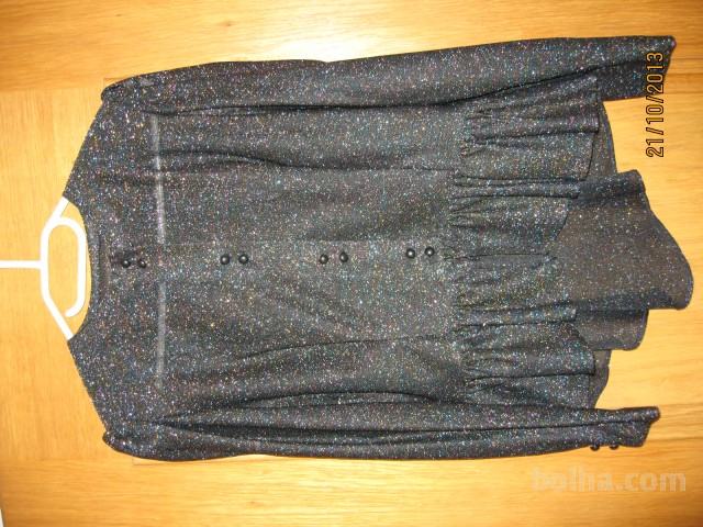 Prodam odlično ohranjeno, kot novo svetlečo svečano (novoletno, maturantsko) bluzo, delano po naročilu, številka 38. Material je rahlo raztegljiv, osnova je črna, svetlikajoč lurex se preliva v različnih barvah. Bluza je izdelana na peplum, s tem, da je zadaj podaljšana in ima zadaj tudi pentljo, ki jo po želji lahko odstranite. Cena je 15,00 eur + 2,00 eur navadne poštnine s predhodnim nakazilom na trr. Po povzetju ne pošiljam.