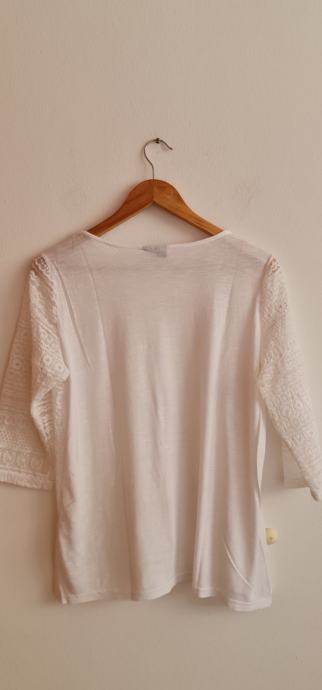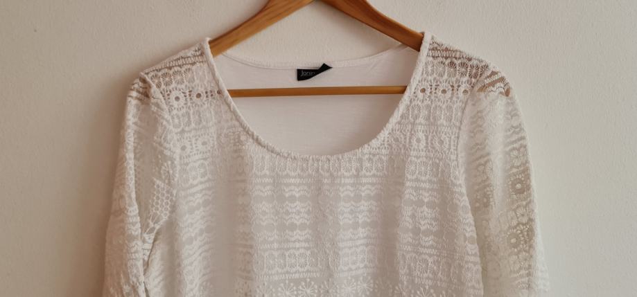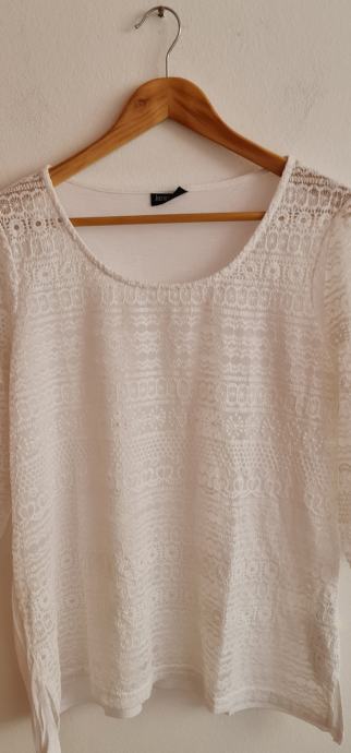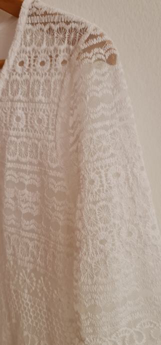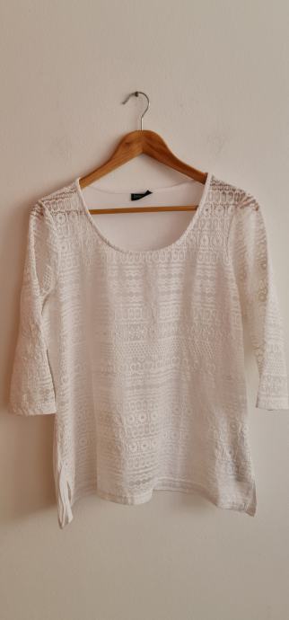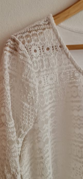 Lahkoten cipkast, raztegljiv topek. Velikost označena kot 44. Lahko se nosi tudi za manjse stevilke, kot bolj ohlapen, oversize topek.