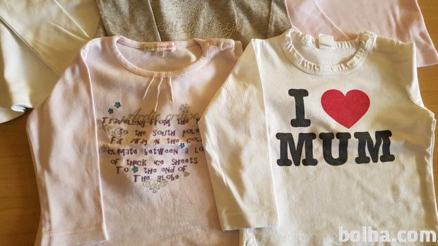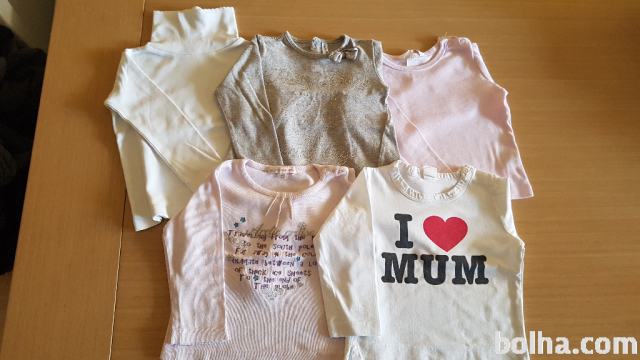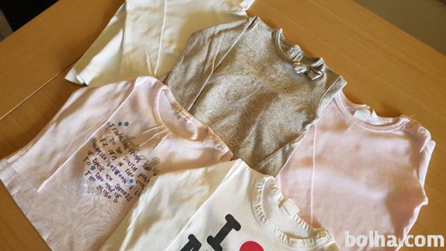 Prodam komplet 5x dekliških majic z dolgimi rokavi, št. 80-86, od 18 do 24 mesecev.