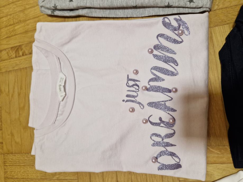 Mango - zgornja vrsta - s svetlečim potiskom in perlicami - samo oprane ali le nekajkrat oblečene