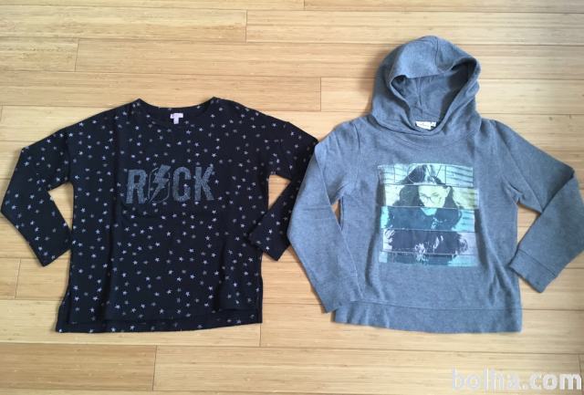 Prodam komplet siv Tom Tailor pulover s kapuco /kapucar za punco in črno Dolgo majico velikosti 152cm oz 11let/12let.