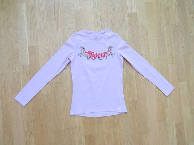 Prodam NOVO majčko št. 158/164 (DEJANSKA VELIKOST JE ŠT. 152/164) znamke NAME IT, pastelno roza barve z motivom tigrov in napisom, NOVA - NIKOLI UPORALBJENA!!!